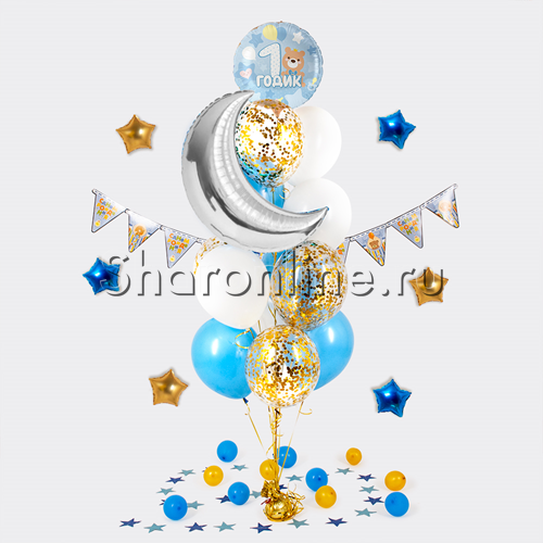 • 1 фольгированный круг "1 годик мальчику" 46 см