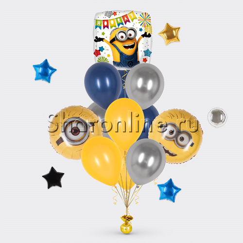 - 1 фольгированный квадрат "Миньоны на вечеринке" 46 см