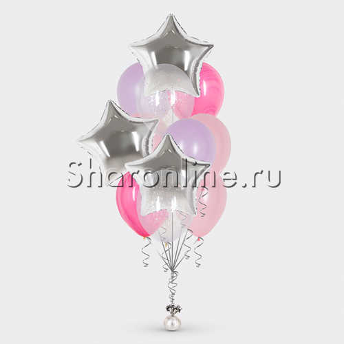 - 2 латексных мраморных розово-сиреневых шара 30 см