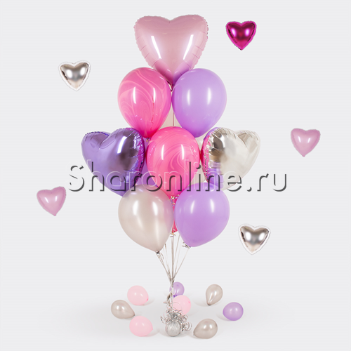 - 3 латексных мраморных розово-сиреневых шара 30 см