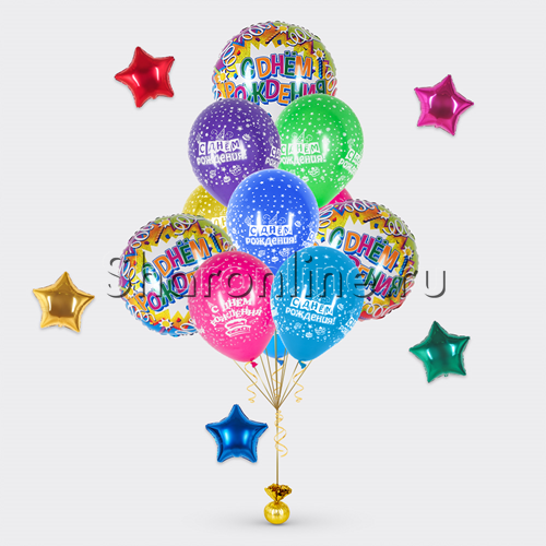 - 10 ярких овальных разноцветных шариков, с надписями “С Днем Рождения”, размер 30 см;