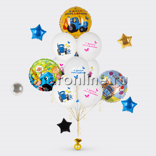 - 1 фольгированный круг "Синий трактор" голубой 46 см