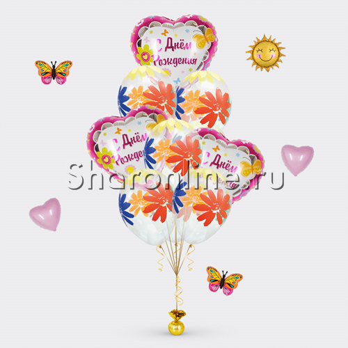 И не только. Специально для тех, кто обожает цветы и воздушные шары - наш букет “Цветочный день рождения”! Два в одном: множество цветов, изображенных на ярких шарах, а именно: