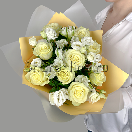 Это связано с уникальностью каждого букета, наличием цветов и упаковки на день доставки.