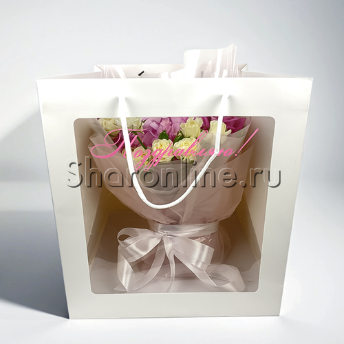 Размер подарочного пакета 31х31х31 см, надпись и её цветовую гамму можем изменить.