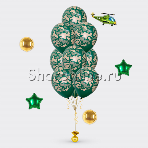 Фонтан из 10 камуфляжных шаров
