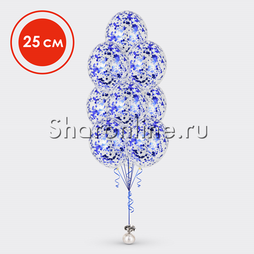 Фонтан из 10 шаров с синим круглым конфетти 25 см