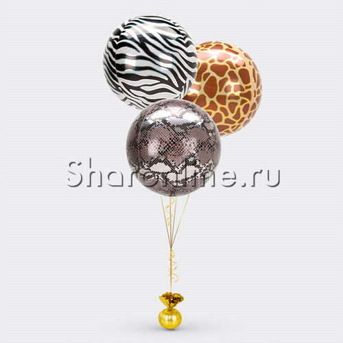 - 4 фольгированных сфер 3D "Сафари" 41 см : зебра, жираф, змея, тигр.