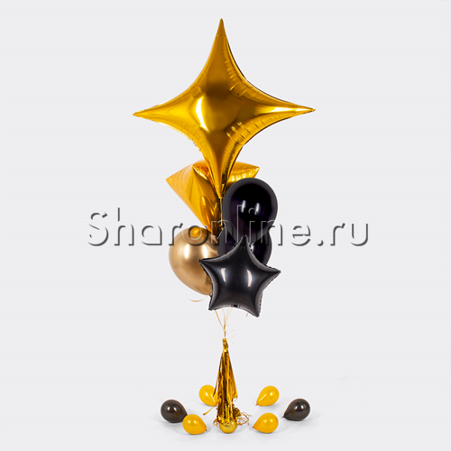 - 1 фольгированная звезда золотая 4-х конечной 71 см