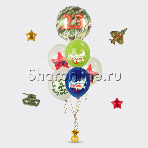 - 5 латексных шаров "С Днём Защитника Отечества" 30 см