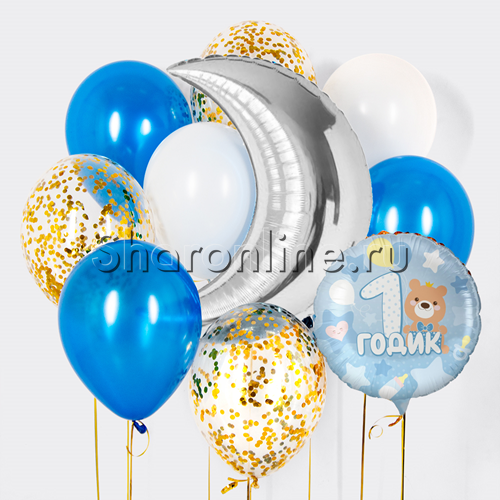 - 1 фольгированный круг "1 годик мальчику" 46 см