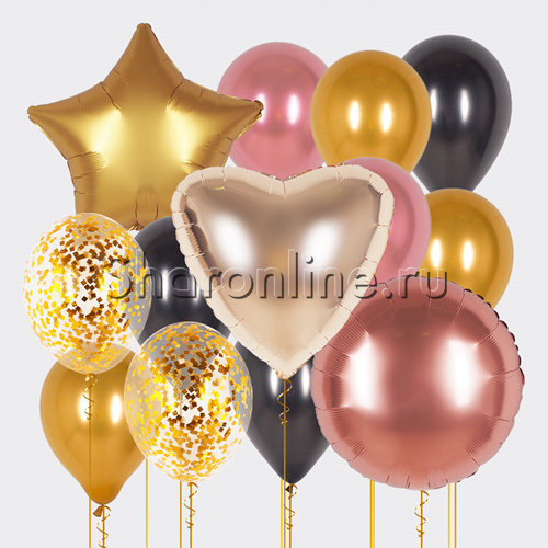 - 2 латексных прозрачных шара 25 см с золотым конфетти