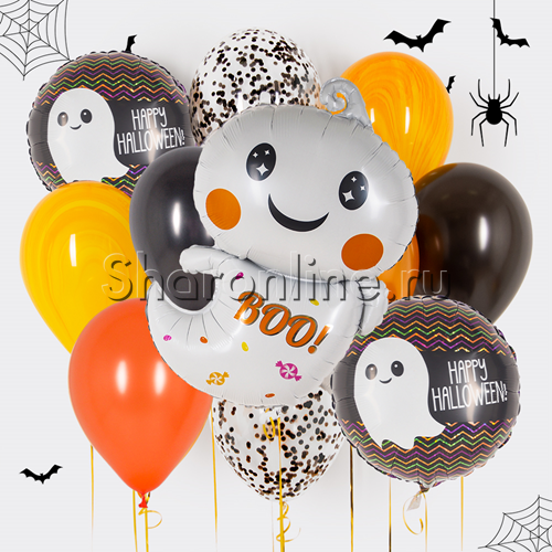 - 2 фольгированных круга "Happy Halloween" Маленькое привидение 46 см