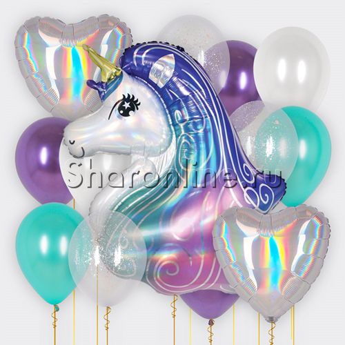 - 1 фольгированная фигура "Единорог" голография 99 см