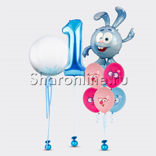 - фонтан из 6-ти шаров "Смешарики" 30 см с фольгированной фигурой "Крош" Смешарики 112 см