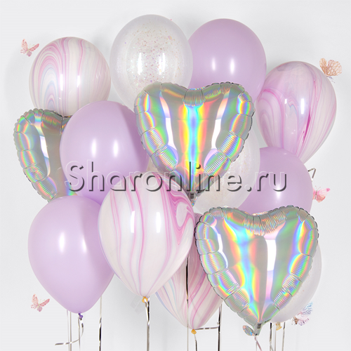 - 4 латексных мраморных сиренево-голубых шара 30 см