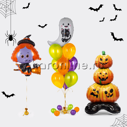 - 1 фольгированная фигура "Ведьмочка на метле" 91 см на грузике