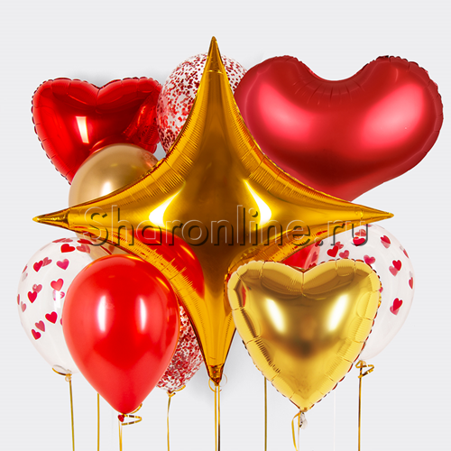 - 2 латексных прозрачных шара 30 см с красным конфетти