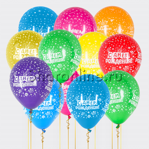 Вы получите шарики на ленточках с красочными принтами на тему "день рождения", собранные в яркое красивое облако. Мы надуваем шарики гелием, и к Вам они приезжают уже в надутом виде. Облако шариков "С днем рождения!" - оригинальный подарок имениннику, который заменит букет цветов и прочие сувениры. Ведь ничто не поднимет Вам настроение так, как это смогут сделать наши шарики!