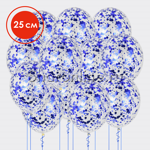 Облако шариков с круглым синим конфетти 25 см