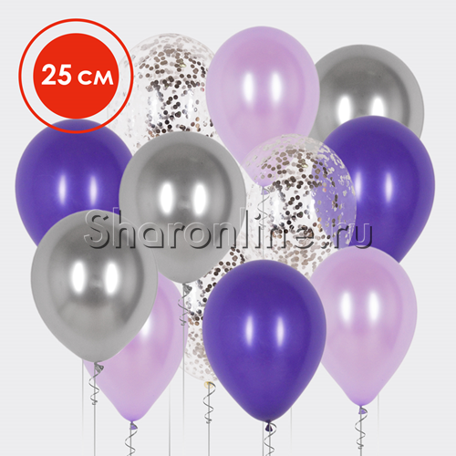 Цветовая гамма: фиолетовый пастель, сиреневый металлик, хром серебро, прозрачный с серебряным конфетти.