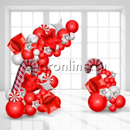 В основе инсталляции используется разнокалиберная гирлянда. Данная композиция необычный и красивый вариант украшения воздушными шарами, гирлянда изготавливается из воздушных шаров разного диаметра.
