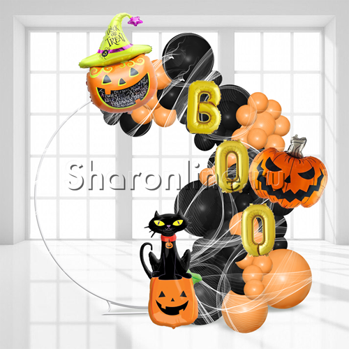 - 1 фольгированная фигура "Кошка на тыкве" 91 см