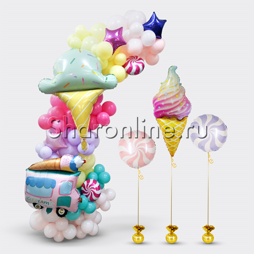 - 1 фольгированная фигура "Искрящееся мороженое" 119 см на золотом грузике