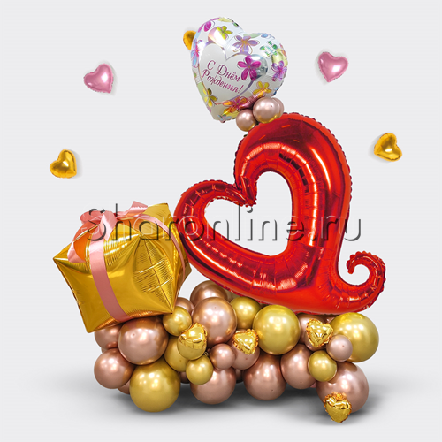 - 1 фольгированное сердце "С Днем рождения! цветы" 46 см