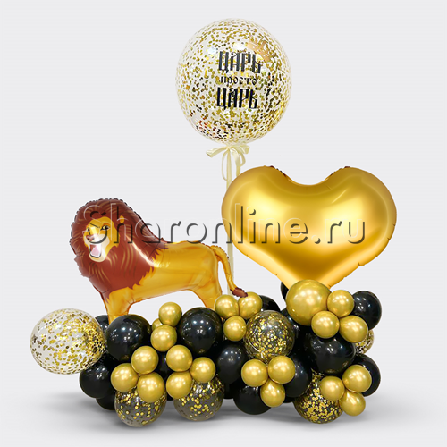 - 1 шар Bubble с золотым конфетти и надписью "Царь просто Царь" (надпись можно изменить по Вашему желанию)