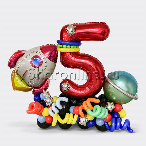 Композиция из шаров "Космическое приключение" с цифрой