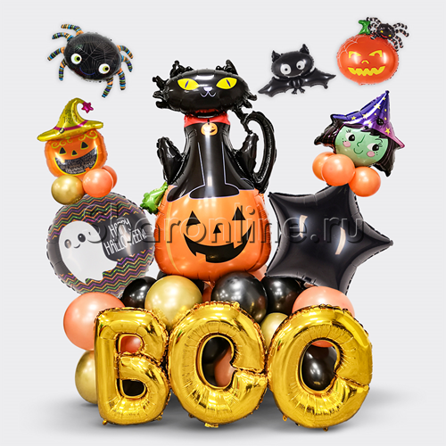 - 1 фольгированная фигура "Кошка на тыкве" 91 см