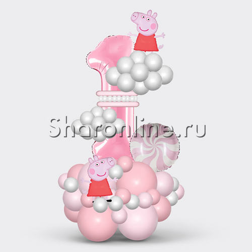 Композиция из шаров "Свинка Пеппа" с цифрой