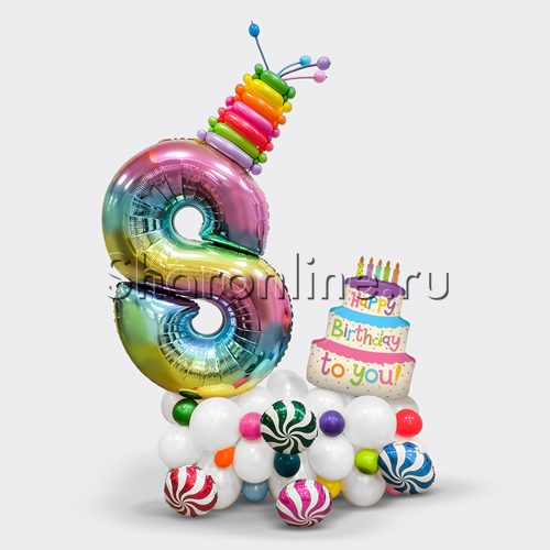 Композиция из шаров "Тортик" с цифрой