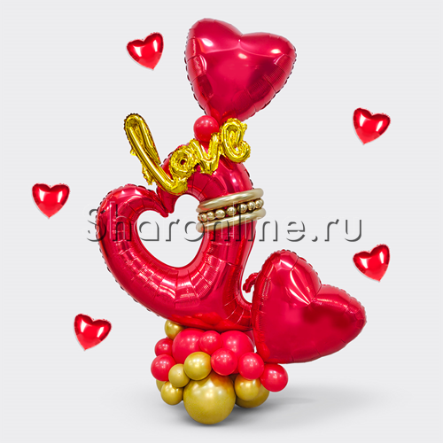 - 1 фольгированное сердце "Вензель" красный 88 см
