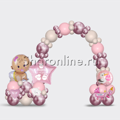 - 1 фольгированная розовая звезда с надписью "Метрика для девочки" 81 см