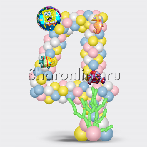 Цифра плетеная из шаров "Кто проживает на дне океана?"