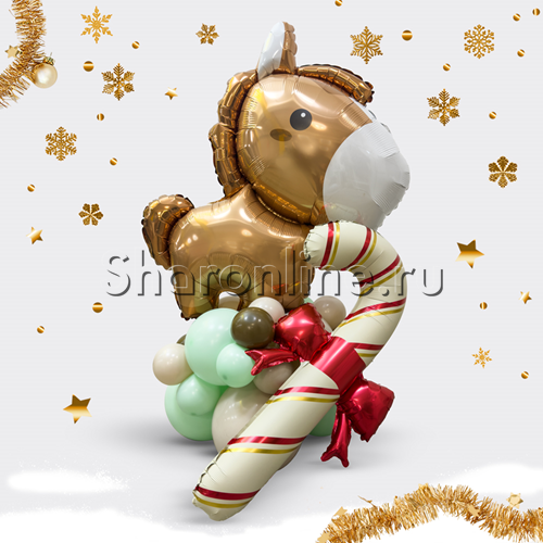 - 1 фольгированная фигура "Леденец трость" с бантиком 76 см