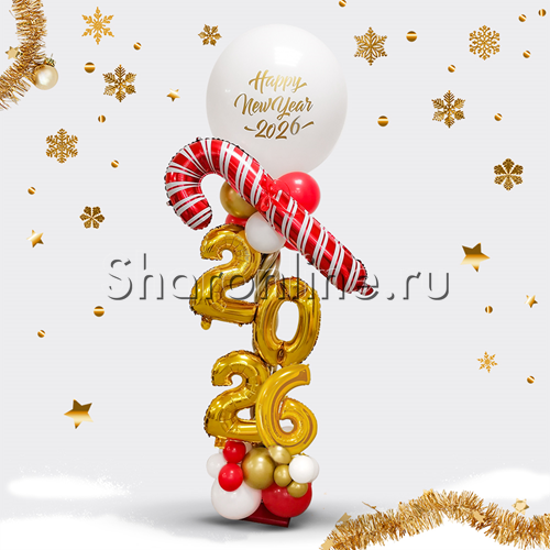 - 1 фольгированная фигура "Трость" красно-белая 70 см