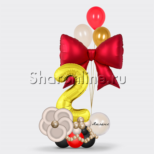 - 1 фольгированная фигура "Бант" красный сатин 97 см