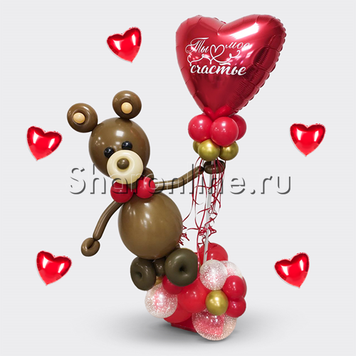 Стойка из шаров "Ты моё счастье!" с мишкой