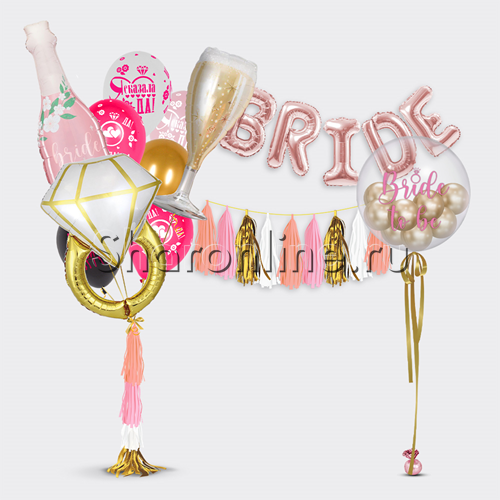- Набор шаров-букв мини "BRIDE" розовое золото 41 см