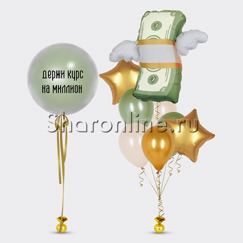 - 1 фольгированная фигура "Деньги с крыльями" 79 см