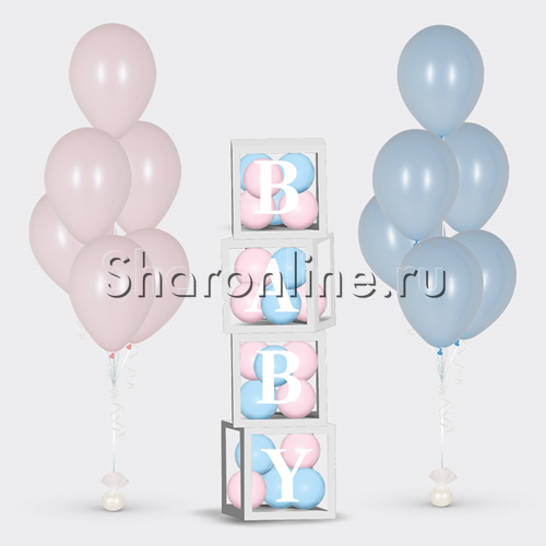 - Набор коробок для шаров Белые 30*30*30 см с наполнением шарами