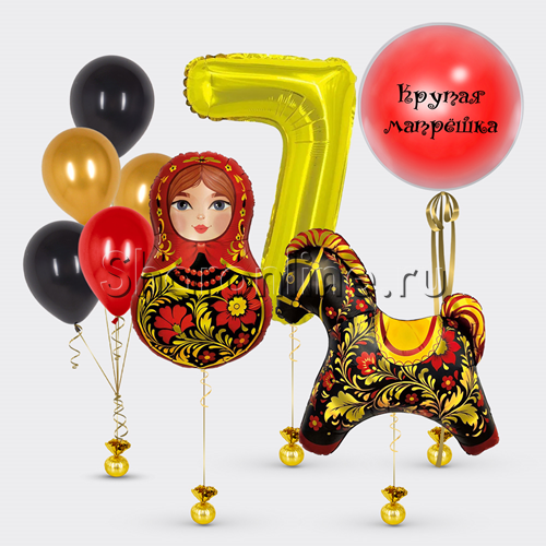 - 1 фольгированная фигура "Матрешка" золотая роспись 79 см на грузике