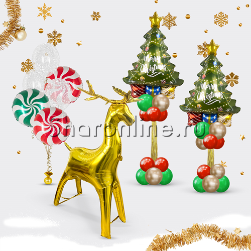 - стойка на каркасе с фольгированной фигурой "Новогодняя елочка и подарки" 104 см (высота 1,8-2 м)