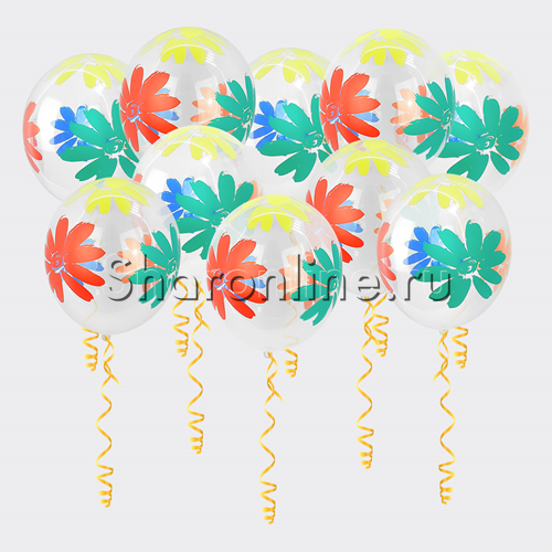 Когда вы увидите эти шарики под потолком, вы будете очарованы. За счет прозрачной основы и яркого рисунка, выполненного как будто мазками, достигается эффект невероятной легкости и полета. Шарики «Ромашки» привносят свежесть и романтику, паря под потолком. Хочется снова влюбиться! Купив такие шарики на 1 мая, Вы наверняка проведете праздник на ура