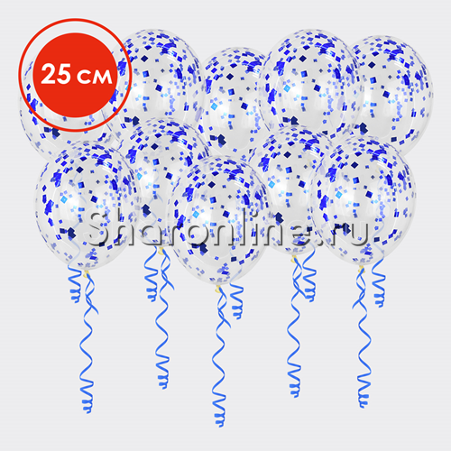 Шары с квадратным синим конфетти 25 см