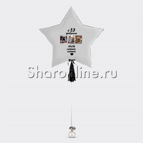Шар Звезда белая "С 23 февраля" 81 см с фотографией