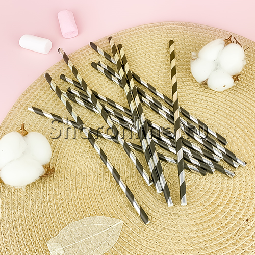 Трубочки для коктейля "Полосы" черный/серебро 12 шт